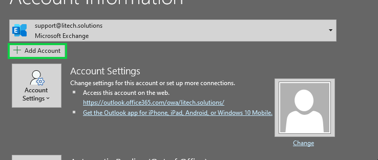 3. Click or tap "Add Account" positioned underneath "Account Information" in the window that opens