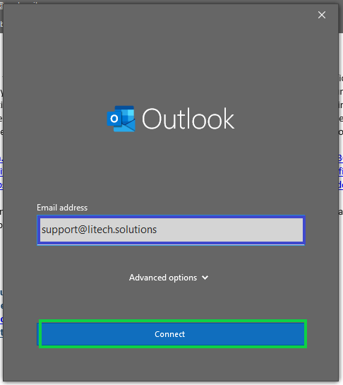 4. The computer may auto-fill the box with email address. Ensure the correct email address is present, and hit "Connect"