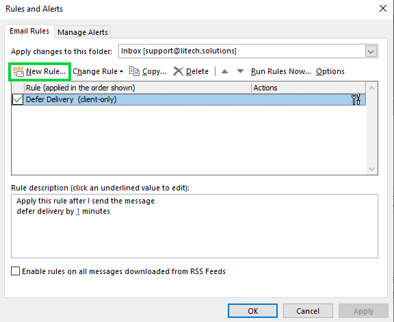 Step 8: Enter number of minutes you would like to defer sending mail, then click "OK"