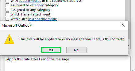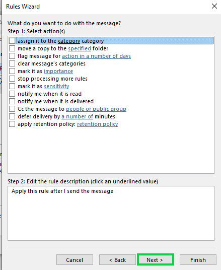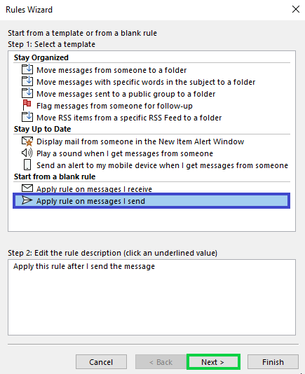 Step 4: Click on "Apply rule on messages I send" and then click "Next"