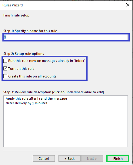 Step 11: Name your new rule, make sure the options match the image below, and click "Finish"